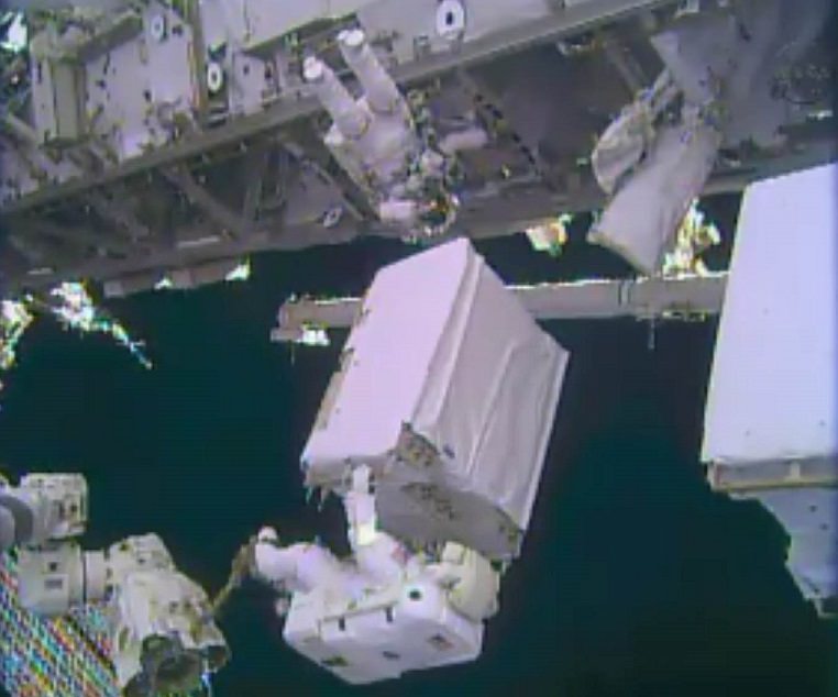 Japanese astronaut Koichi Wakata controlled Canadarm2 during two spacewalks to replace a faulty ammonia pump in December 2013. Credit: NASA TV (screenshot)[/caption]