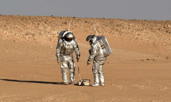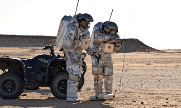 Two astronauts operating the ScanMars device in the desert in Oman. Image: OEWF – Austrian Space Forum[/caption]