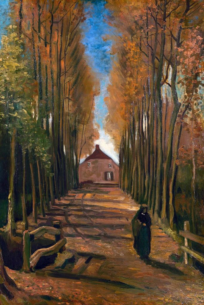 Art historians have also long depended on van Gogh's many letters to his brother Theo to help date most of the artist's work. A total of three letters, written by Vincent during late October and early November of 1884, describe the lovely autumn weather he was experiencing. One letter, dated on or about Oct. 25, 1884, includes a description that matches *Lane of Poplars in the Autumn*: