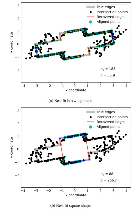 Once the shape edges have been determined, the simulation attempts to fit a square or boxwing shape into the edges. This involves recovering intersection points and determining their distance from the proposed satellite shape edge. "This process leaves us with the best-fitting square and the best-fitting boxwing shape," the researchers write.