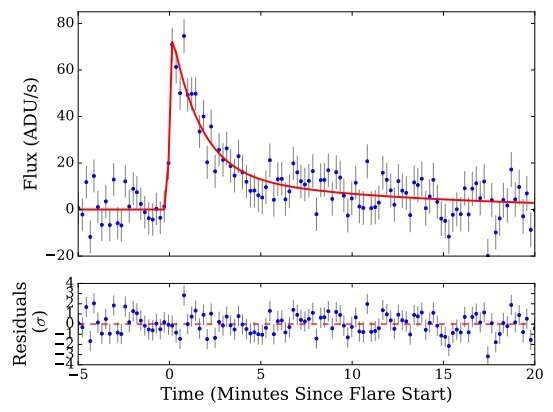"As the star is so faint, we could only see it when it was flaring," says Jackman. "So, most of our light curve sits at a count rate of zero. Then when the flare occurs, it suddenly spiked up!"
