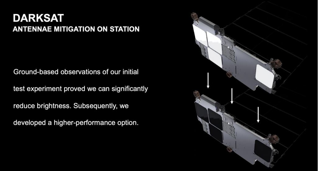 Dr. Horiuchi continued to explain that the light energy absorbed by the coating is then converted to heat. All objects with a measurable temperature radiate in the infrared. Since the DarkSat is warmed by its coating more than a typical Starlink satellite, it follows that DarkSat radiates more in the infrared. Essentially, when viewed in IR, DarkSat is brighter than a typical Starlink.