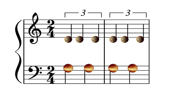 When describing the planets' orbits, Hara compared it to an orchestra playing music, though the arrangement is not quite perfect: