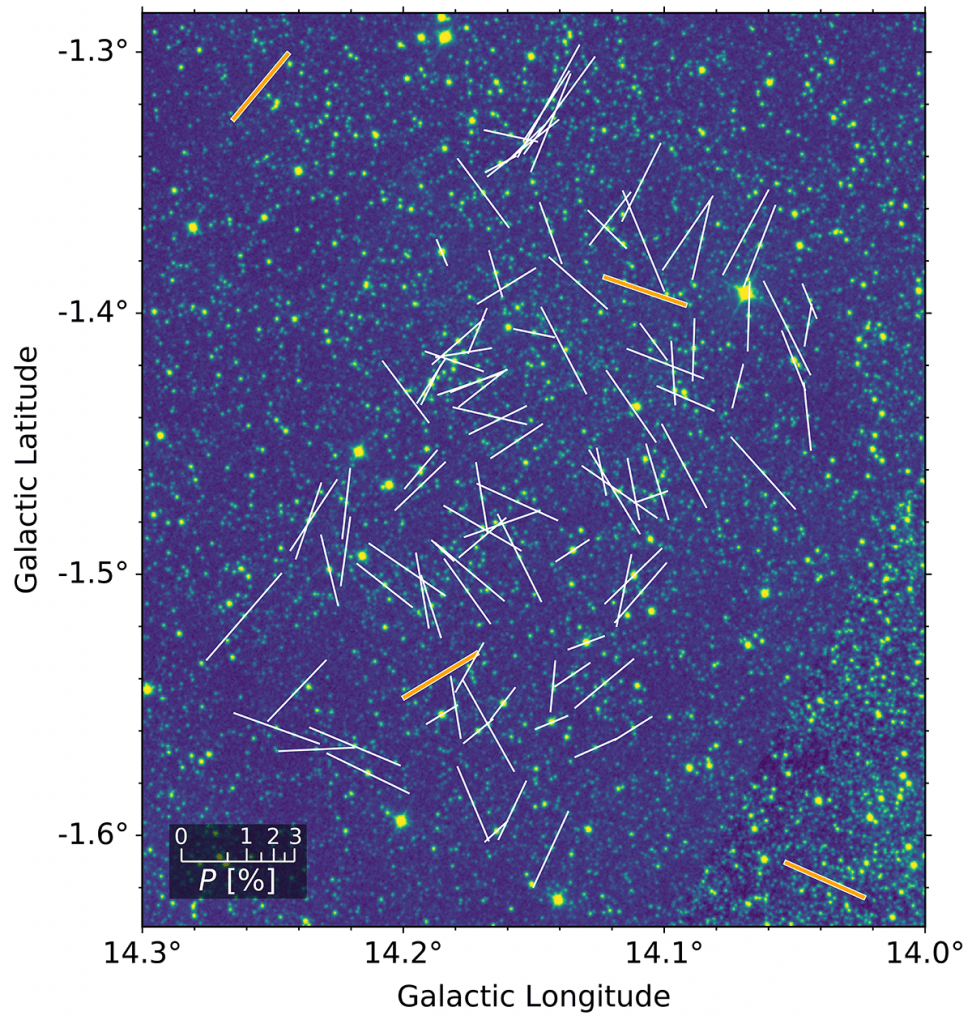 This has been done before, and it has given us a rough map of magnetic fields in our galaxy. What these studies found was that the magnetic fields of the Milky Way tend to fall uniformly along the disk shape of the galaxy. This new study took this one step further. Using data from the Gaia spacecraft, the team had a detailed map of the distribution of stars and nebulae in the local region of our galaxy. They then combined this with polarization observations of the Sagittarius spiral arm. Together this gave them a detailed 3-dimensional magnetic field map of the region.