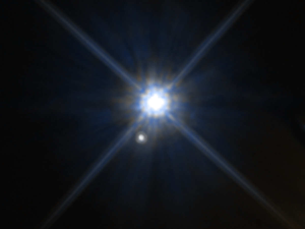 Artist's impression of the binary pair made up by a white dwarf star in orbit around Sirius (a white supergiant). Credit: NASA, ESA and G. Bacon (STScI)
