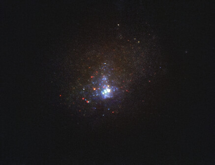 The evidence comes from a galaxy 75 million light-years away known as the Kinman Dwarf Galaxy. Between 2001 and 2011, several groups of astronomers were studying the spectra of this galaxy because it has a particularly low metallicity. Because the galaxy is small and far away, astronomers can't see all the individual stars, but the galactic spectra allow them to identify some of the bright stars by particular emission lines. One of these was a luminous blue variable star.