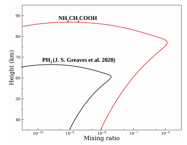 Also, the detection of glycine matches up with the detection of phosphine. "The latitude dependent distribution of glycine roughly matches (within ?10?) with the detection limit of recently detected phosphine and with the proposed upper Hadley-cell boundary where gas circulates between upper and lower altitudes."