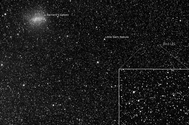 Asteroid 2012 LZ1 imaged by Ian Musgrave with the iTelescopeT16. Click for larger view of the image.