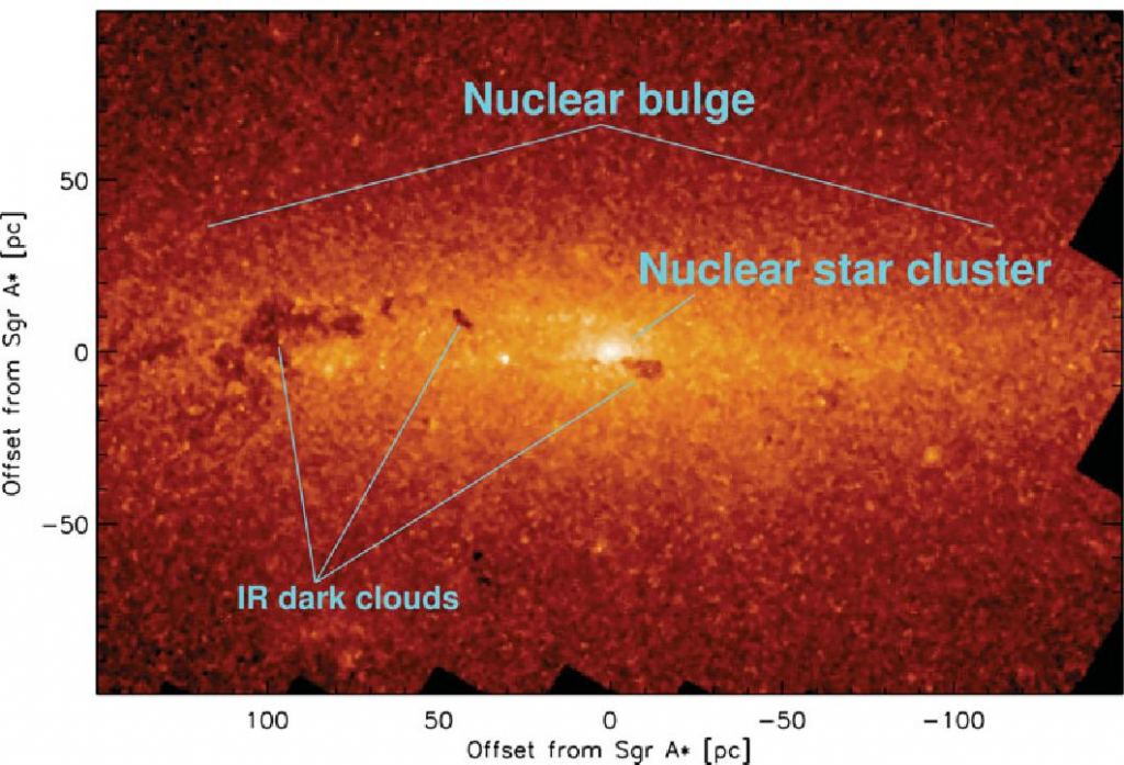 What are the unknowns in this turbulent region? Sgr. A*, the SMBH at the heart of it all, draws matter inexorably towards itself, shredding stars that get too close and creating an enormous swirling mass of gas and dust. Vast gas clouds are caught up in it all, and out of these clouds, stars in their multitudes are born and then extinguished, many as ultra-powerful supernovae. The Milky Way's nuclear star cluster is there, too, and is many times more massive than Sgr. A*, an anomaly in galaxies. And then there's the nuclear bulge, where old, comparatively metal-rich stars congregate.