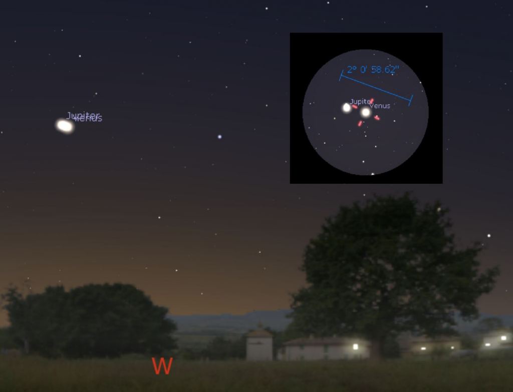 March 1st: Venus 30' from Jupiter (31 degrees east of the Sun)