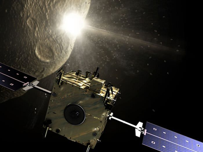 So before the impact, to assist future targeting and required impact velocity calculations, the Orbiter will make a detailed analysis of the target asteroid's overall mass and its near-surface density and granularity. Then, after the impact, the Orbiter will assess the speed and distribution of the collision ejecta via its Impact Camera.