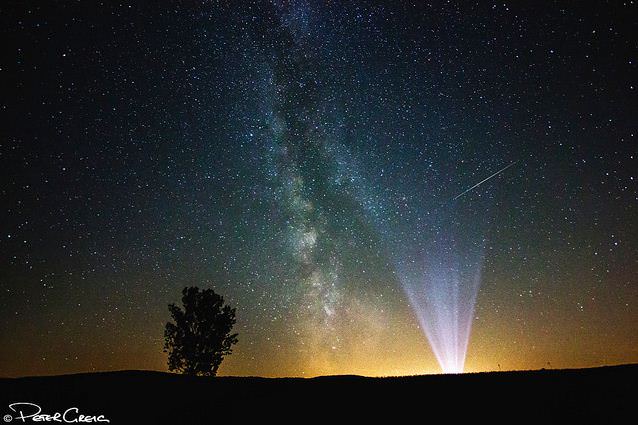 Light beams and the Milky Way. Credit: Peter Greig ( )