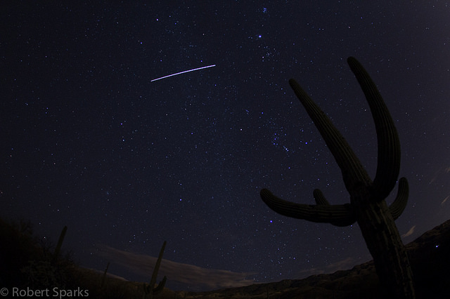 Old meets space-age in this image of the International Space Station passing over an ancient saguaro cactus at the