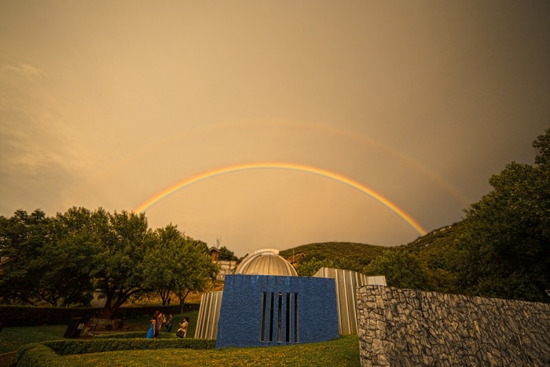 was in the right place at the right time this weekend! He took this beautiful photo of a double rainbow all the way across the sky -- and directly over the Planetario Alfa observatory in Mexico, part of the