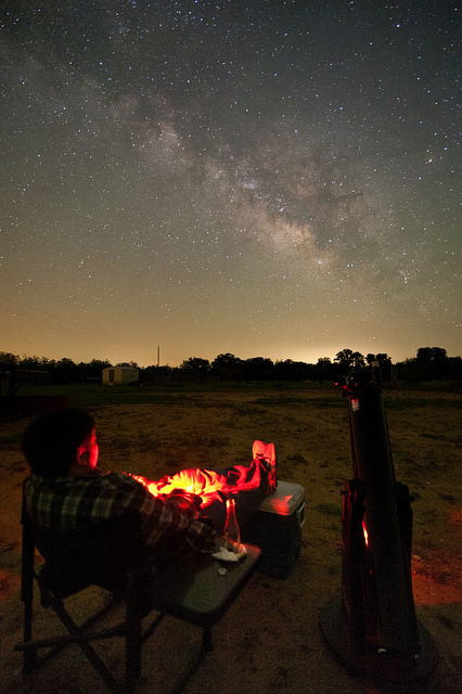 from Texas, who took this self- and galactic-portrait on June 19, 2012. Grady said this is a single 30 second exposure, with a red LED light to illuminate himself and 6" Dob telescope.