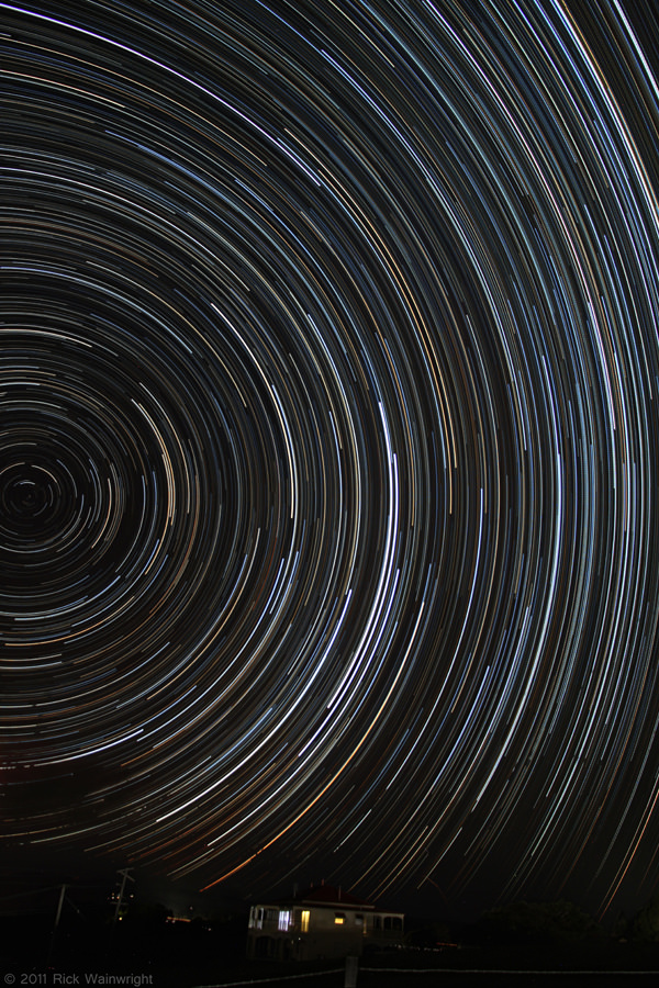 [/caption] This image of startrails is a composite of 209 one-minute exposures captured by Rick Wainwright on July 30, 2011. He used a Canon EOS Kiss X4 camera.