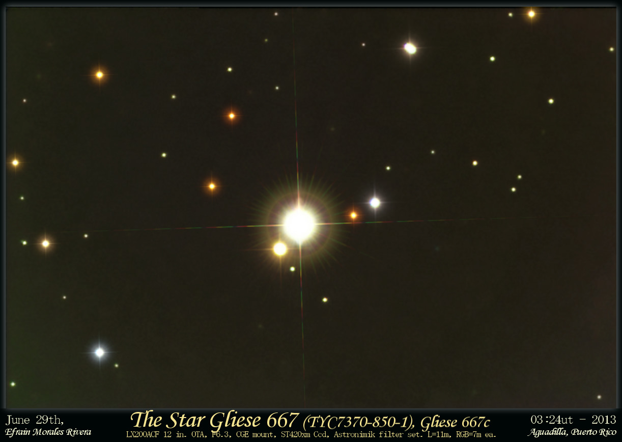 Here is a great new observation of the triple star system Gliese 667 from astrophotographer Efrain Morales of the