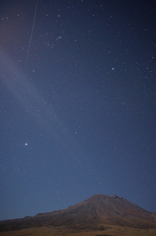 A Geminid meteor pierces the sky over the San Pedro volcano in the Atacama desert in Chile. Credit and copyright: srta Andrea on Flickr. [/caption]