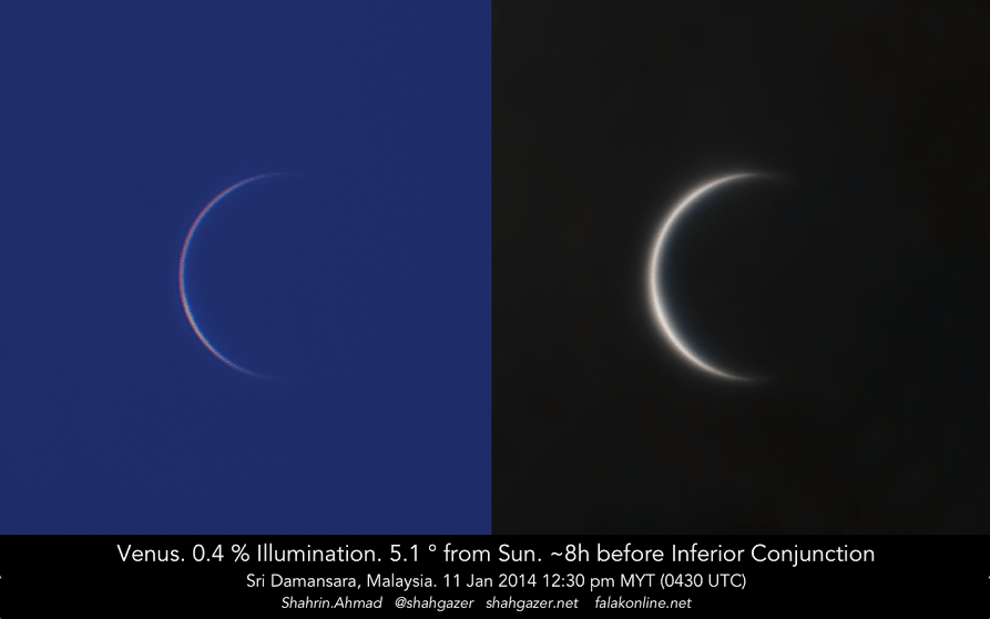 to try and capture it, and Shahrin Ahmad in Malaysia nabbed the tiny crescent Venus about 8 hours before inferior conjunction, in what he said was a personal record!