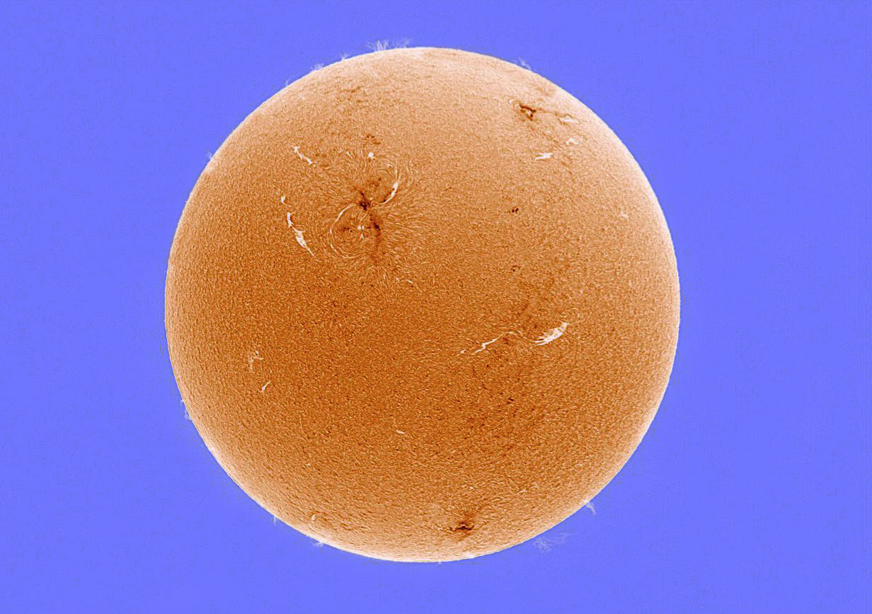 in Mexico has taken a few images of the Sun, and reversed the colors, or made a negative. This increases the contrast and allows structures to be seen -- or at least stand out -- that otherwise are not visible.