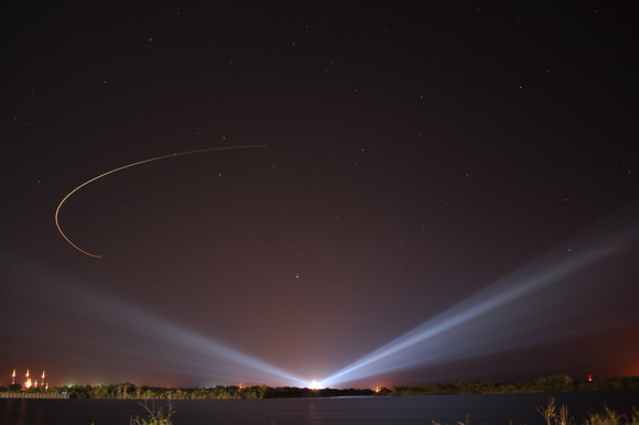 During the early morning countdown for the launch of space shuttle Endeavour today, it was back and forth, yes and no, red and green, no and no-go. And all because of weather. As per standard procedure, an astronaut flies the Shuttle Training Aircraft to monitor weather conditions around the launchpad. Today it was especially important in helping make the decision if the weather was acceptable for launching the shuttle. Amazingly, photographer Romeo Durscher captured this beautiful shot as astronaut Chris Ferguson flew the STA right over launchpad 39A and shuttle Endeavour. Not only is the image gorgeous in its own right, but it also captures a pivotal moment in the launch countdown. The skies had just cleared of the low clouds that had been drifting in and out of the area all night, clearing the way for a spectacular night launch. This image and the memory of the fickle weather will stay with me always. New desktop! Get a larger version here.