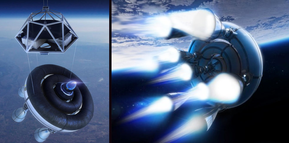 The Rockoon concept is not unlike what Scaled Composites undertakes with a plane and rocket. Their Whiteknight planes lift the SpaceShips to 50,000 feet for takeoff whereas the Zero2Infinity balloon will loft Bloostar to 65,000 feet or higher. The increased altitude of the balloon launch reduces the atmospheric density to half of what it is at 50,000 feet and altogether about 8% of the density at sea level.