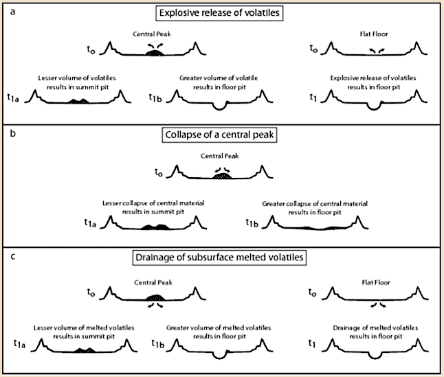 That same study couldn't determine any single cause of these central pits, but suggested that multiple mechanisms may be responsible.