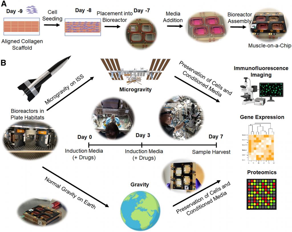 "In conclusion, we show that engineered muscle-on-a-chip bioconstructs exposed to microgravity induced prominent changes to their transcriptome that mimic aspects of impaired myogenesis," the authors write.