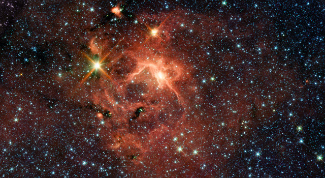 Previously, Spitzer detected dusty disks of planetary debris around more mature massive stars, which supports the idea that planets may form even in these extreme environments. (