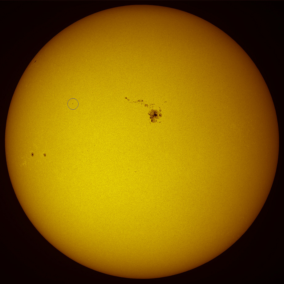 Legault's equipment was a Takahashi FSQ-106 refractor, a Baader Herschel prism and Canon 5D Mark II camera. Exposure of 1/8000s at 100 ISO.