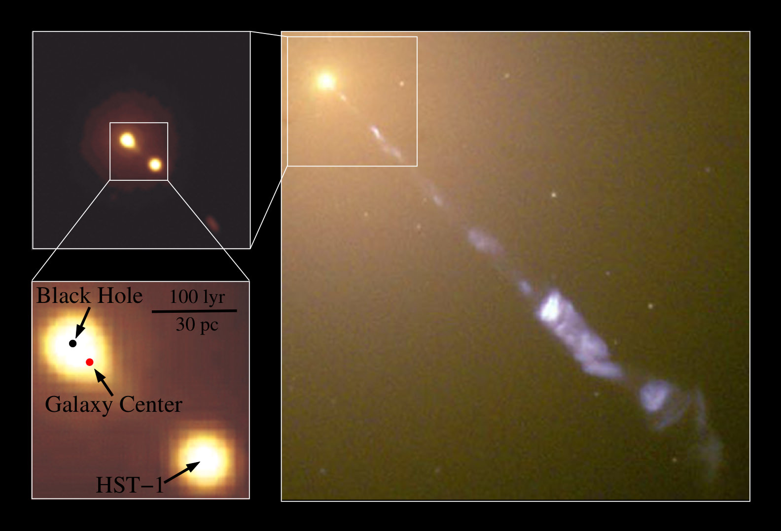 The elliptical galaxy M87 is known for a jet of radiation that is streaming from the supermassive black hole (SMBH) that the galaxy houses. This jet, which is visible through large-aperture telescopes, may have functioned as a