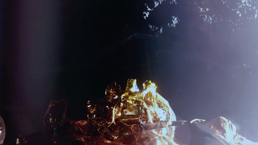 First image from the Blue Ghost landing site. It transmitted a view of itself and the lunar surface. Courtesy Firefly Aerospace.