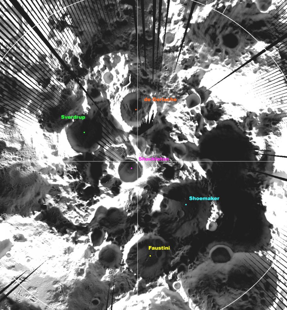 One idea bandied about on Twitter is the Shackleton Crater, named after Ernest and located on the Moon's south pole. Might that be a destination? That seems a little too obvious, though the crater has lots of water ice in it, and some say it's a great spot for a potential base. But I think we're getting ahead of ourselves here.