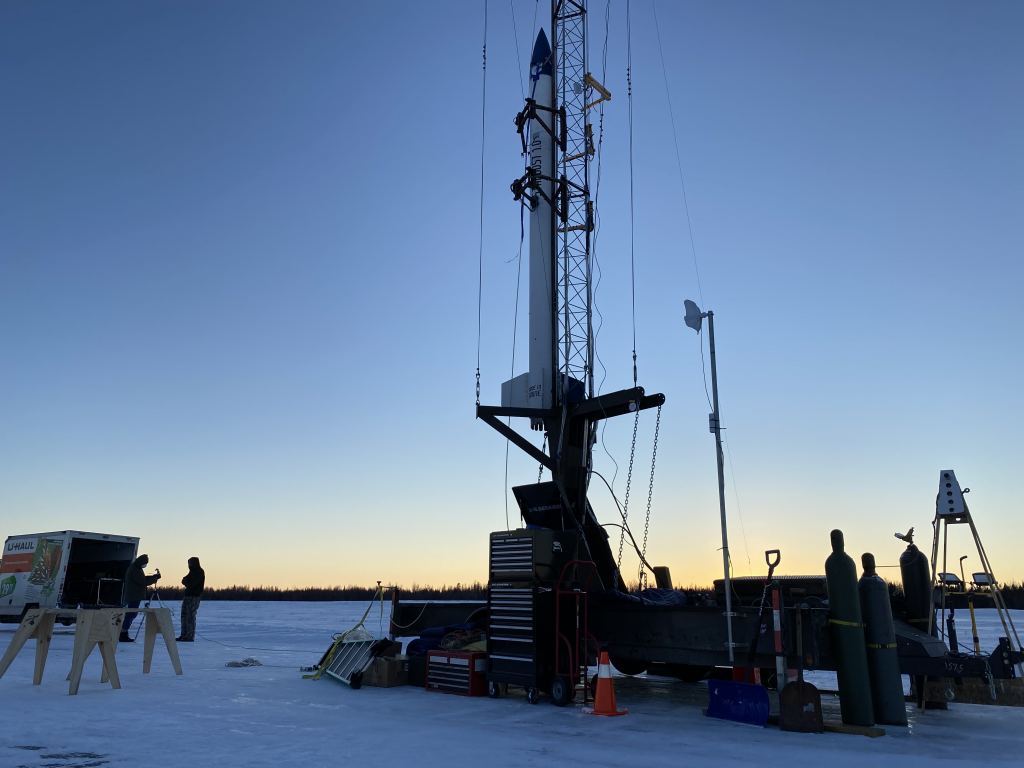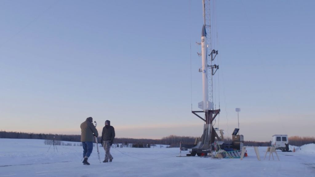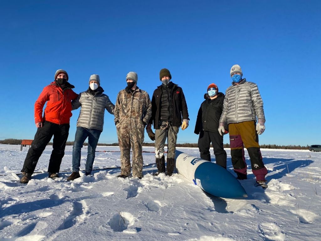 The launch was also put on hold by a (possible) first in rocketry: a 'snowmobile in the zone.' The successful conclusion of the launch also featured the first rocket recovery by snowmobile.