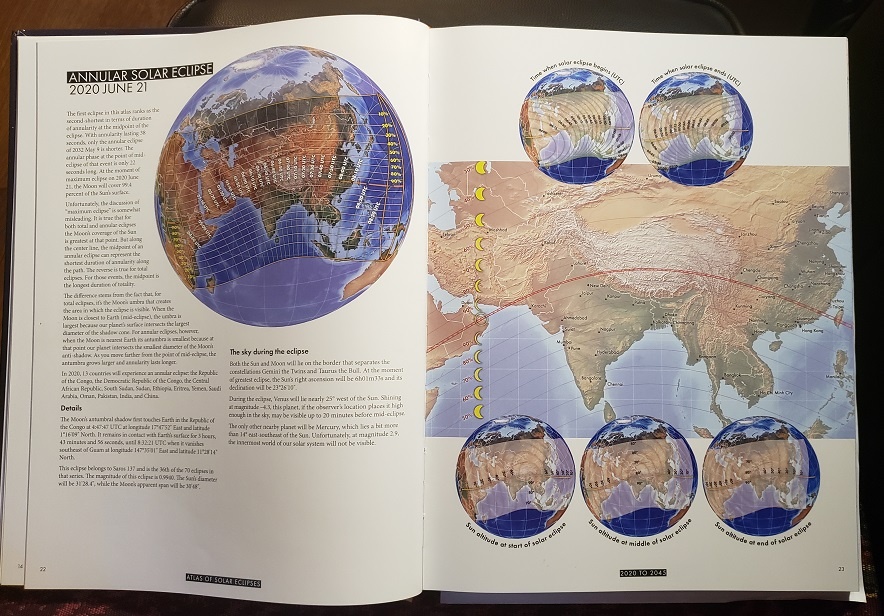 The blow-by-blow breakdown sections for each eclipse also shows key elements, such as the celestial sky lineup during the eclipse and other specific factors. And hey, this book is out in time to cover the next big total solar eclipse crossing North America on April 8th2024. I'm torn for this one, as it crosses over my hometown of Mapleton, Maine… but weather prospects for April favor Mexico and Texas.