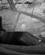 Afterwards, Spirit rolled backward 85 centimeters (2.8 feet) to a position from which it could use its miniature thermal emission spectrometer on the cleaned areas for assessing what minerals are present. Due to caution about potential hazards while re-approaching "Humphrey," the rover moved only part of the way back. Plans for sol 56, ending at 6:33 p.m. Sunday, PST, call for finishing that re-approach and further inspecting the brushed areas. If all goes well, the rock abrasion tool's diamond-toothed grinding wheel will cut into the rock on sol 57 to expose fresh interior material.