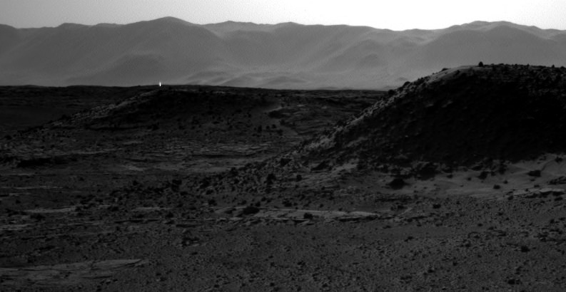 Thanks to everyone who has emailed, Tweeted and texted me about the "artificial bright light" seen on Mars. And I'm so sorry to disappoint all the folks who were hoping for aliens, but what you see above is just an image artifact due to a cosmic ray hitting the right-side navigation camera on the Curiosity rover.