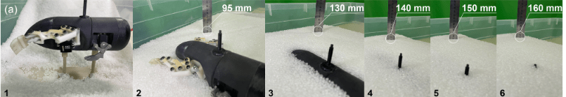 Understanding kinematics is only the first step, and the team from Guangdong took the next step in building a prototype, which, admittedly, looks like a mole, though maybe not a cute and cuddly one. It has distinct forearms and hind legs, and its head is shaped like a mole's, though given its lack of eyes, it almost looks more like a shell casing. Advanced electronics, power systems, and motors are hidden inside the robot's body, allowing it to mimic the overall shape of a mole more fully.