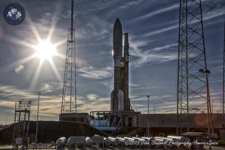 MUOS-3 Navy communications satellite and Atlas V rocket at pad 41 at Cape Canaveral Air Force Station, FL for launch on Jan. 20, 2015. Credit: ULA[/caption]