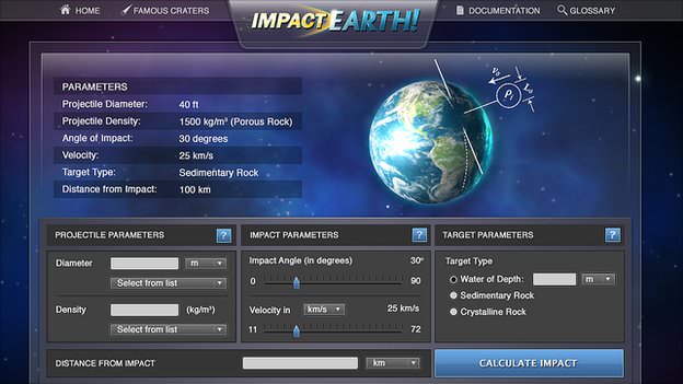 The original Impact Earth website was created in 2002 for use by NASA and homeland security. The new version, built in a collaboration between Purdue University and Imperial College London, is more user-friendly for the general public, as well as providing more visual details of an impact. Besides being rather fun to play around with, the website is highly educational about what a various sized impacts would do Earth, depending on if it hit ground or water.