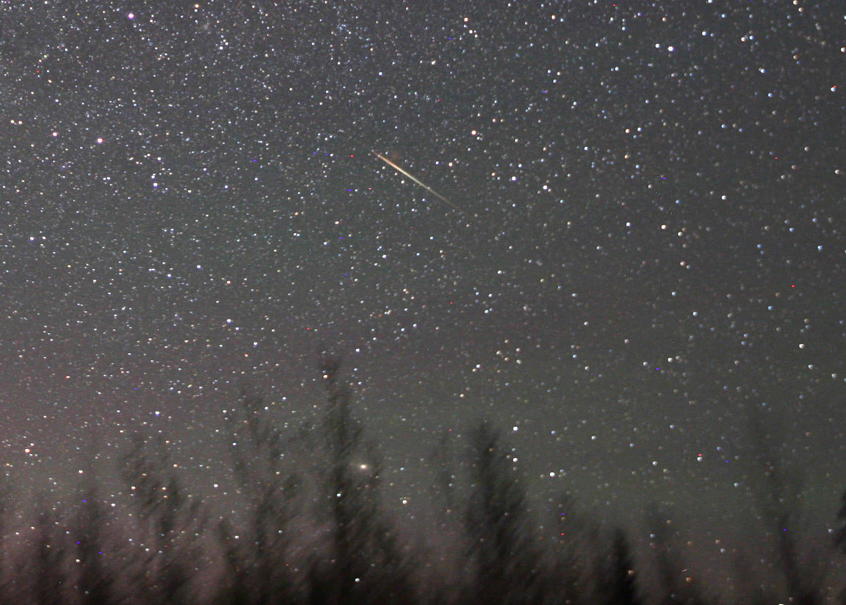 - a giant one - but then I noticed that the center of the streak was brighter and contained a starlike object that moved in tandem with the wispy glow. I quickly took a couple pictures as the streak traveled north and expanded into a large, nebulous ray that persisted for about 1o minutes. There were no other clouds in the sky and the aurora was not active at the time.