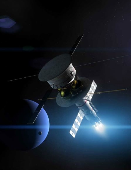 The Icarus Pathfinder starship passing by Neptune. Credit: Adrian Mann[/caption]