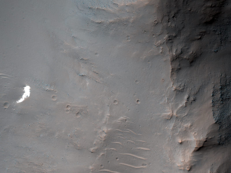 And it may be in this image, as it would be in approximately the right region of where Mars 6 was supposed to land. In fact, hopes were raised when an anomalous small bright patch was seen by MRO's Context Camera (CTX) team, and then a CTX team member suggested this area as a target for HiRISE.