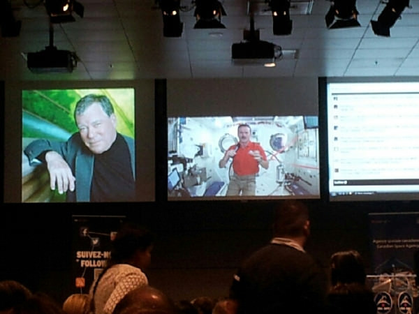 Ah, the nerdy joys of living in the 21st century! Chris Hadfield, an astronaut on board the International Space Station and William Shatner, who portrayed someone in space, were able to talk to each other live. After Captain Kirk opened hailing frequencies, Hadfield replied -- using some Star Trek sound effects. Needless to say, when science fiction and reality collide like this, it is an epic day in nerdom.