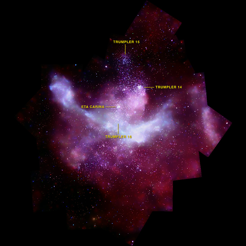 The beautiful Carina Nebula may very well be a literal supernova factory. Encompassing a large field of 1.4 square degrees, Chandra made of a mosaic of 22 individual pointings. In total, the image represents 1.2 million seconds - or nearly two weeks - of Chandra observing time. In addition, multi-wavelength data, such as infrared observations from the Spitzer Space Telescope and the Very Large Telescope (VLT), were then added to the mix to reveal that the supernova process has already begun. Clues, such as the lack of bright x-ray sources from Trumpler 15, suggest its massive stars have already been destroyed. In addition, six candidate neutron stars - instead of just one - provide additional evidence that supernova activity is gearing up in Carina.