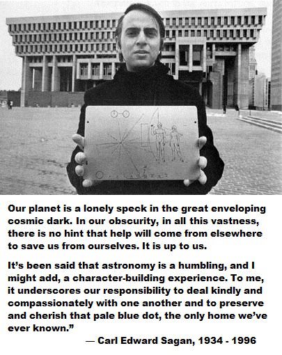 I count myself among those who say they might not be where they are today were it not for Carl Sagan. Reading his books such as "Cosmos" and "Demon Haunted World" broadened my horizons when I needed it most. One of my favorite books of all time is "Pale Blue Dot" which really puts everything in perspective.