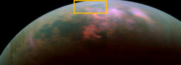Titan's south pole is drier than the north. A Cassini image of the south pole region shows only two lakes, while the north pole region has dozens of lakes. This led scientists to believe that if there's clouds and rain at the relatively dry south, the north pole, with its abundance of liquid methane, must have clouds and rainfall during its summer, too.
