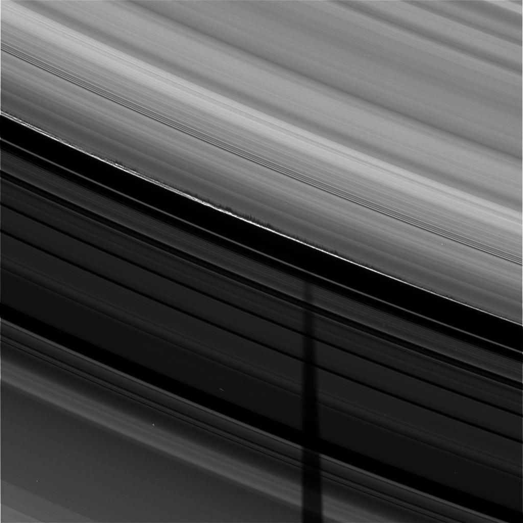 [/caption] Wow! As one of the members of UnmannedSpaceflight said, "Knowledge of the rings' 3D structure is about to be revolutionized. And let's not forget that these shadow will get much longer in the coming months." Let's zoom in a little more: [caption id="attachment_28978" align="aligncenter" width="580" caption="Saturn's rings closer yet. Credit: NASA/Cassini"]