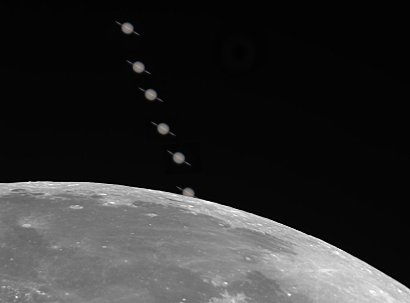 "Here in London we were lucky enough to catch an occultation of Mars by the Moon a few years ago, so I was excited to see that there would be a reasonably favorable occultation of Saturn visible towards the end of August this year," astrophotographer Roger Hutchinson told *Universe Today*. "Imaging events like this where the main subjects have such a huge difference in brightness requires the capture of multiple shots at different exposures, these then being composited to record the event more or less as the eye sees it. Transits, occultations and eclipses bring home the constant motion of our solar system and are always amazing events to witness and capture. Can't wait 'til the next one!"