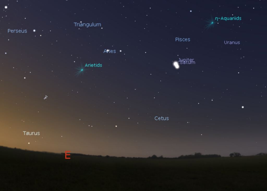 The two planets will almost seem to touch on the evening of the 21st, though in reality, the two gas giants are 883 million kilometers (548.7 million miles) apart. Jupiter shines at magnitude -2, while Saturn is just eleven times fainter, at magnitude +0.6. The razor thin waxing crescent Moon just misses occulting the pair by three degrees on the evening of Wednesday, December 16th. (photo-op!)